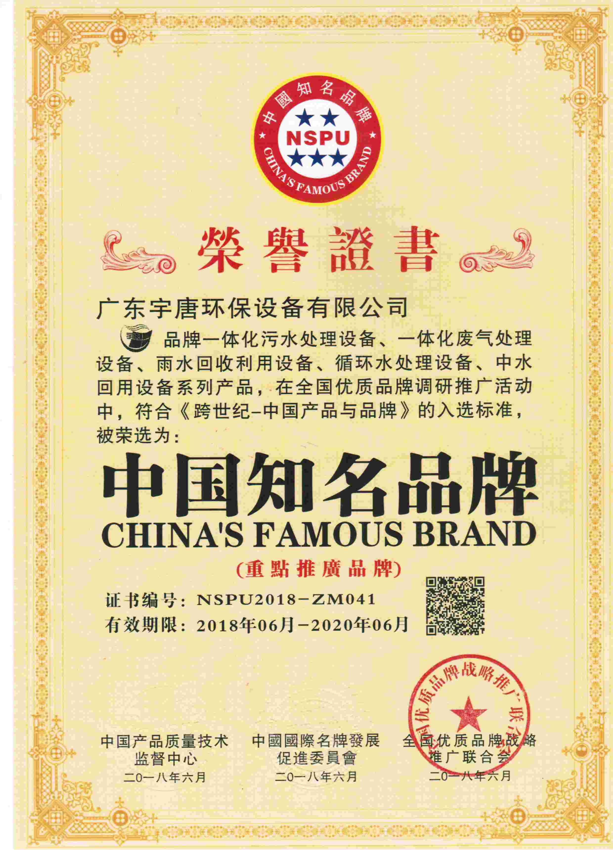 中國知名品牌證書